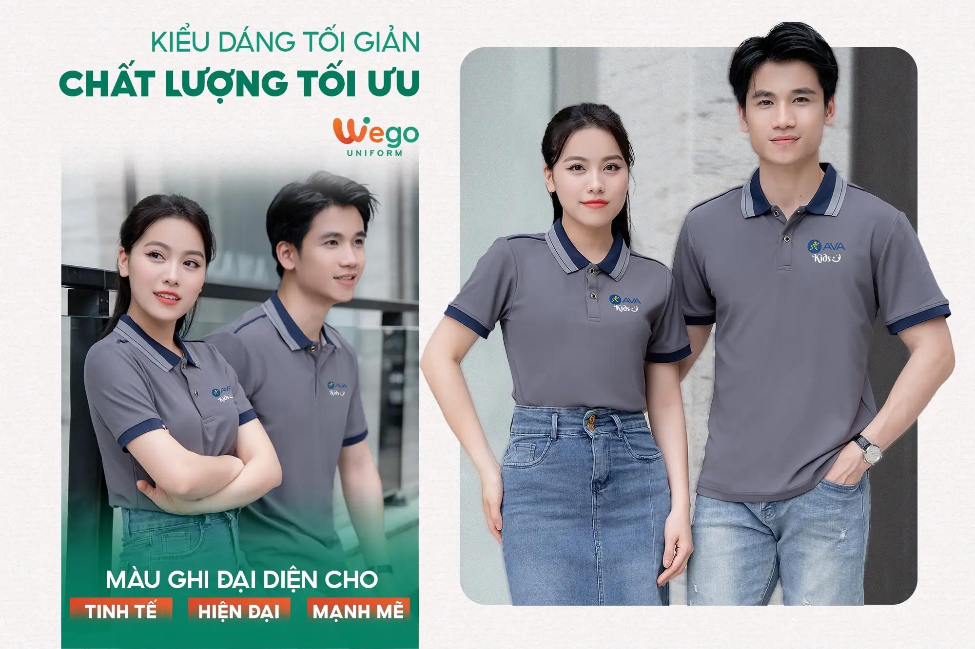 II. Lý do nên chọn mẫu áo phông đồng phục WEGO màu ghi phối xám đậm lé 1 xanh đen 04