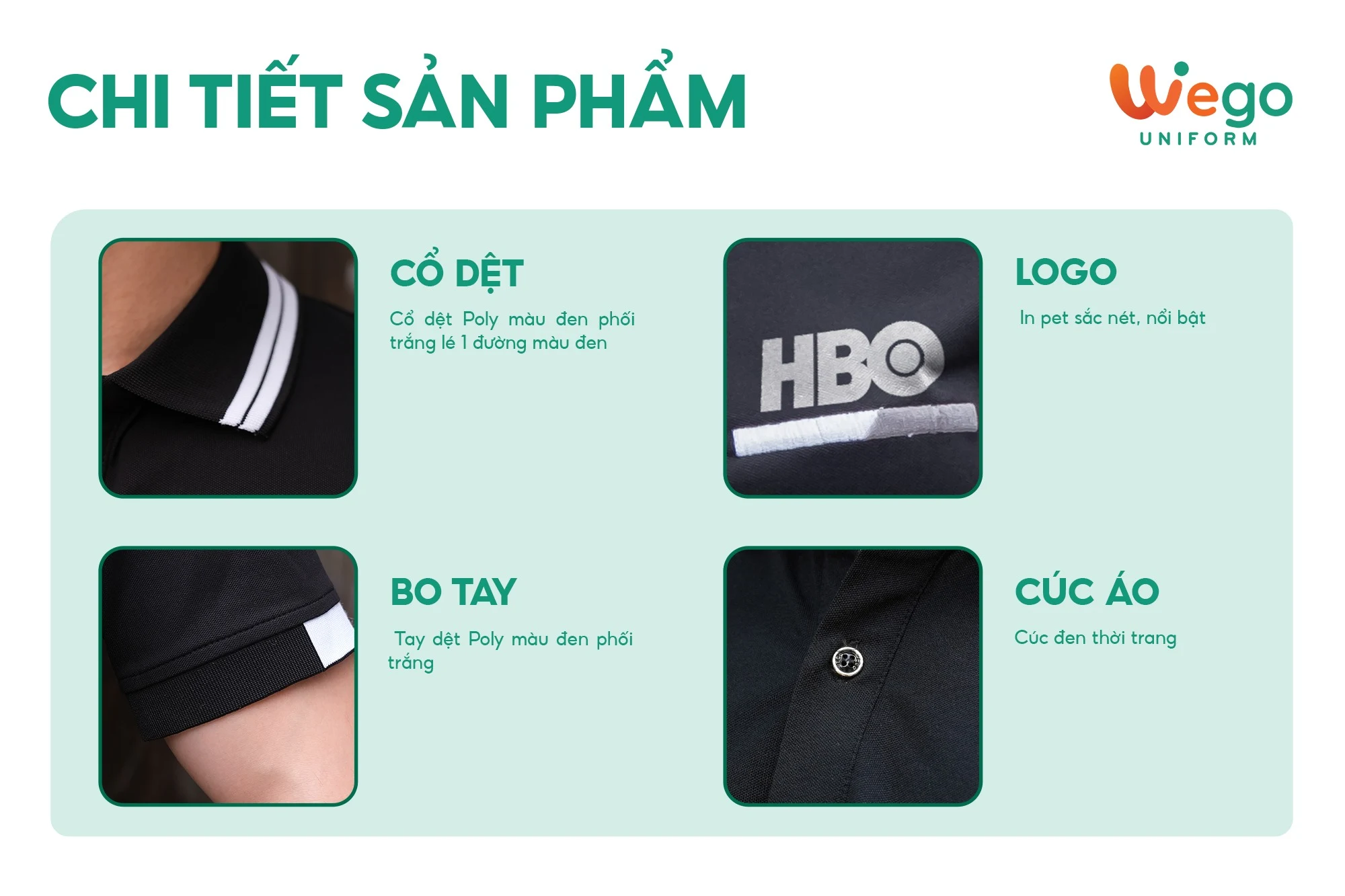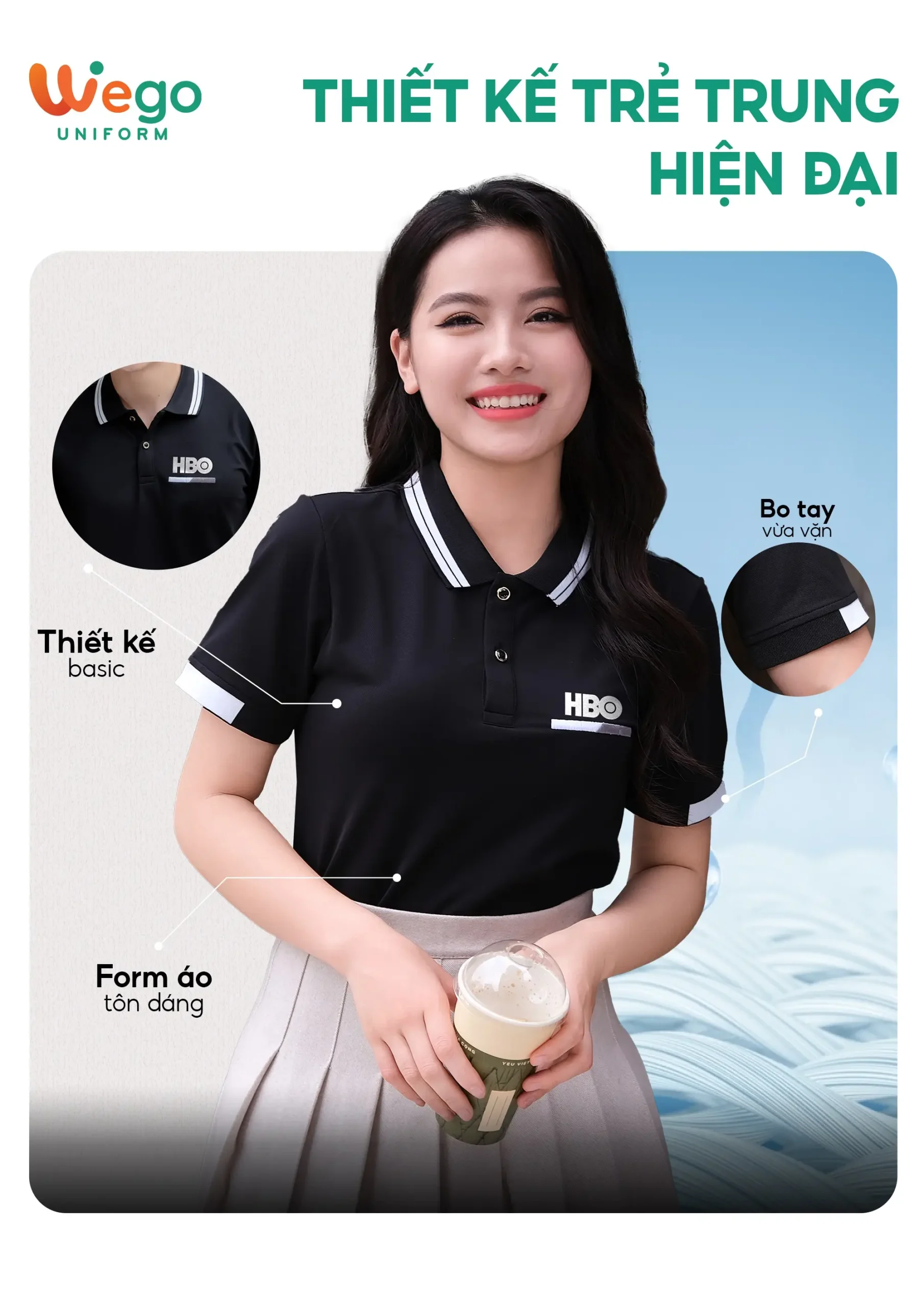 • Được thiết kế độc quyền bởi Wego Uniform, vừa nâng cao tính thời trang, vừa giúp nâng cao nhận diện thương hiệu