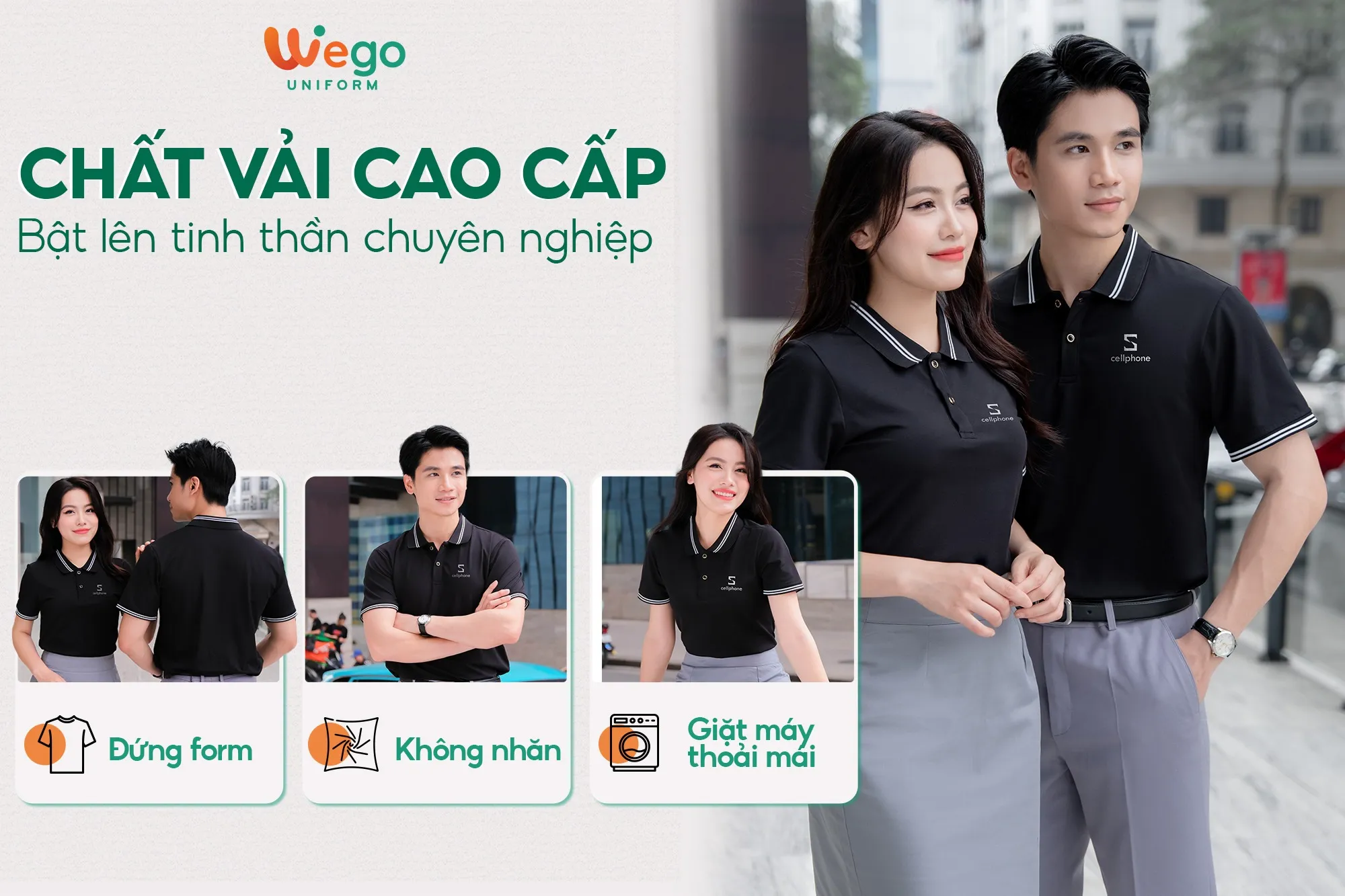 Chính vì vậy, áo đồng phục Wego luôn có độ bền cao, khả năng co giãn và thoáng khí tốt. Từ đó mang lại sự thoải mái tối đa cho người mặc, ngay cả trong thời tiết nắng nóng hay những môi trường làm việc đòi hỏi vận động nhiều hoặc trong thời gian dài.