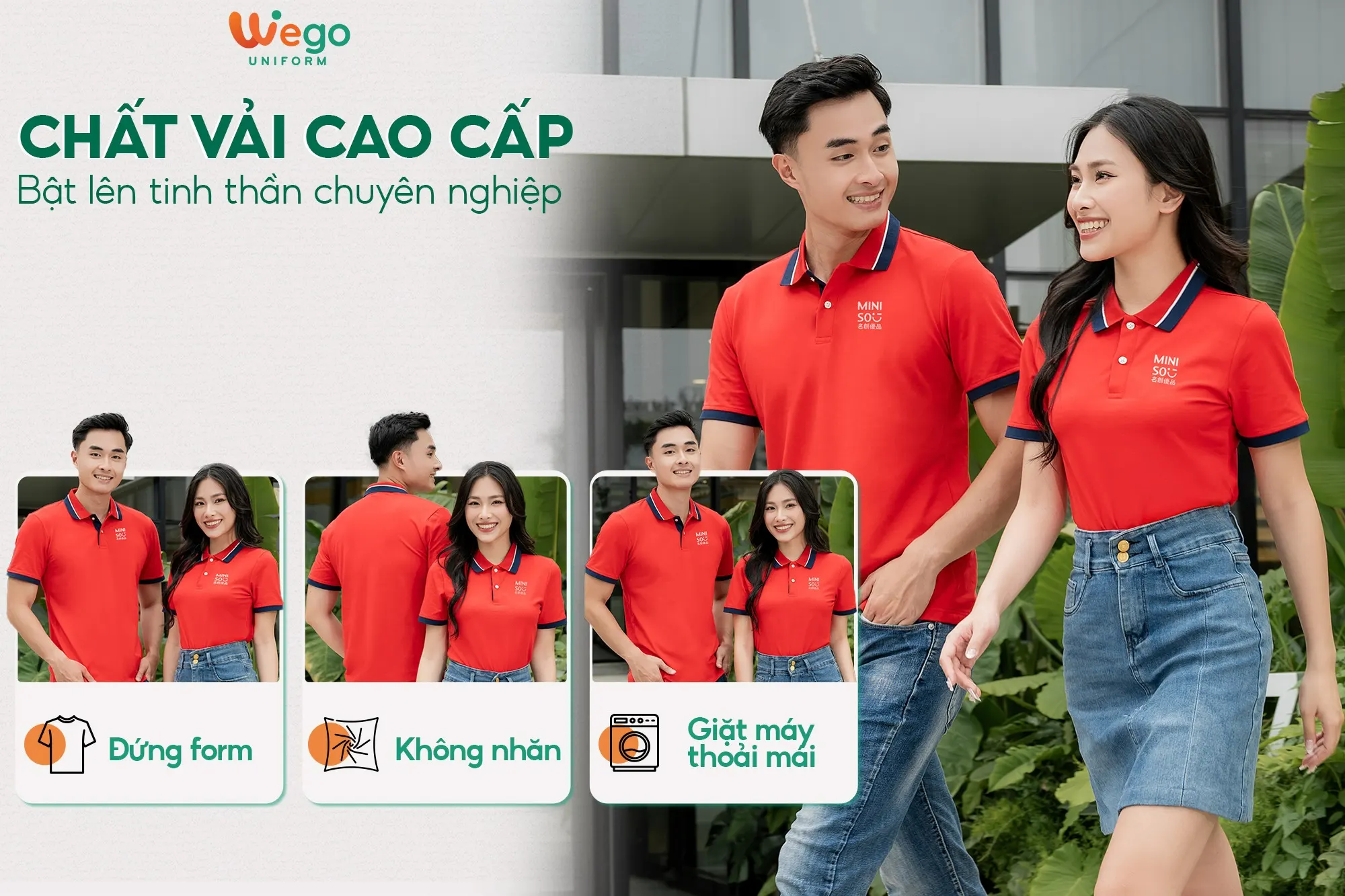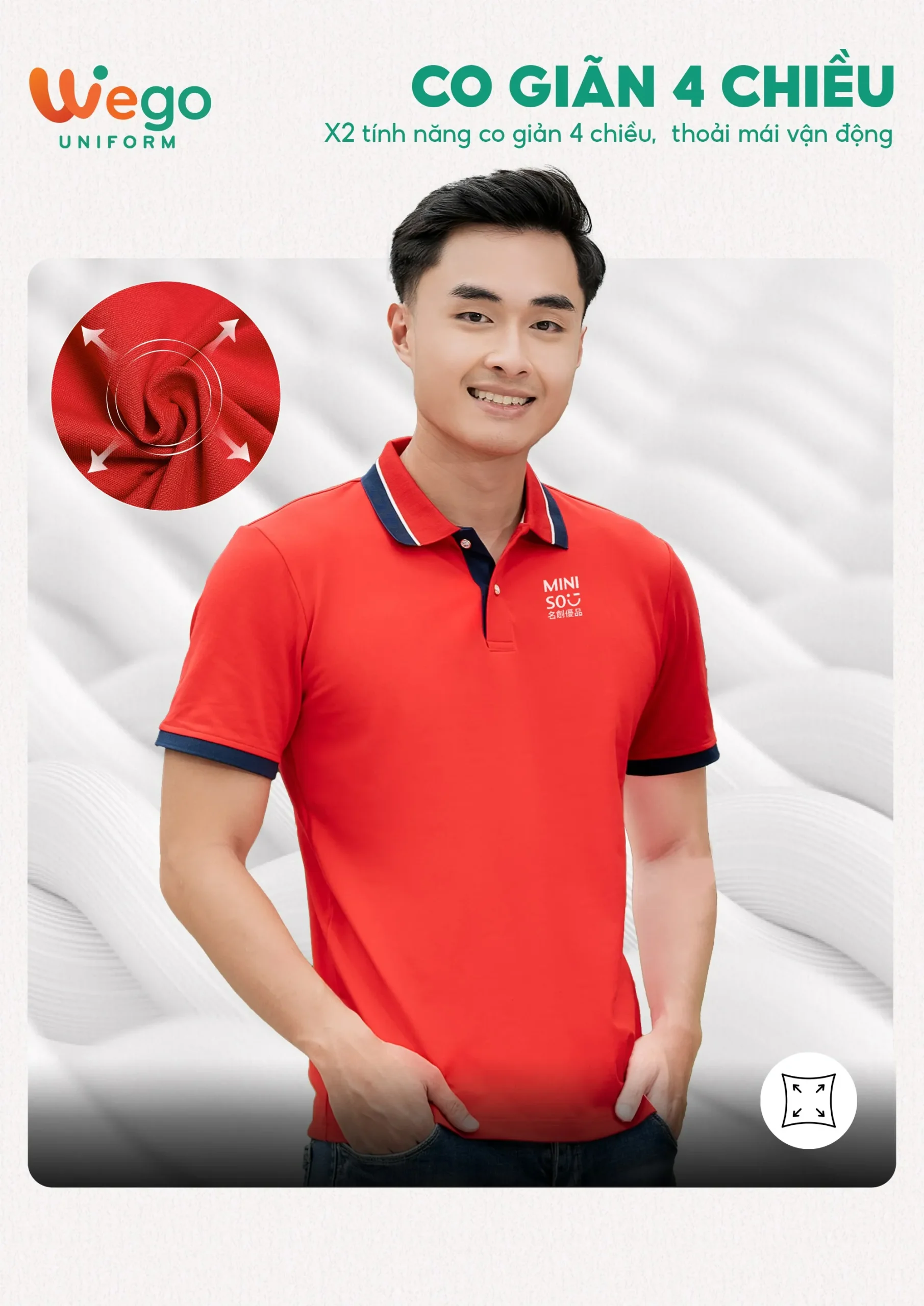 Chính vì vậy, áo đồng phục Wego luôn có độ bền cao, khả năng co giãn và thoáng khí tốt. Từ đó mang lại sự thoải mái tối đa cho người mặc, ngay cả trong thời tiết nắng nóng hay những môi trường làm việc đòi hỏi vận động nhiều hoặc trong thời gian dài.