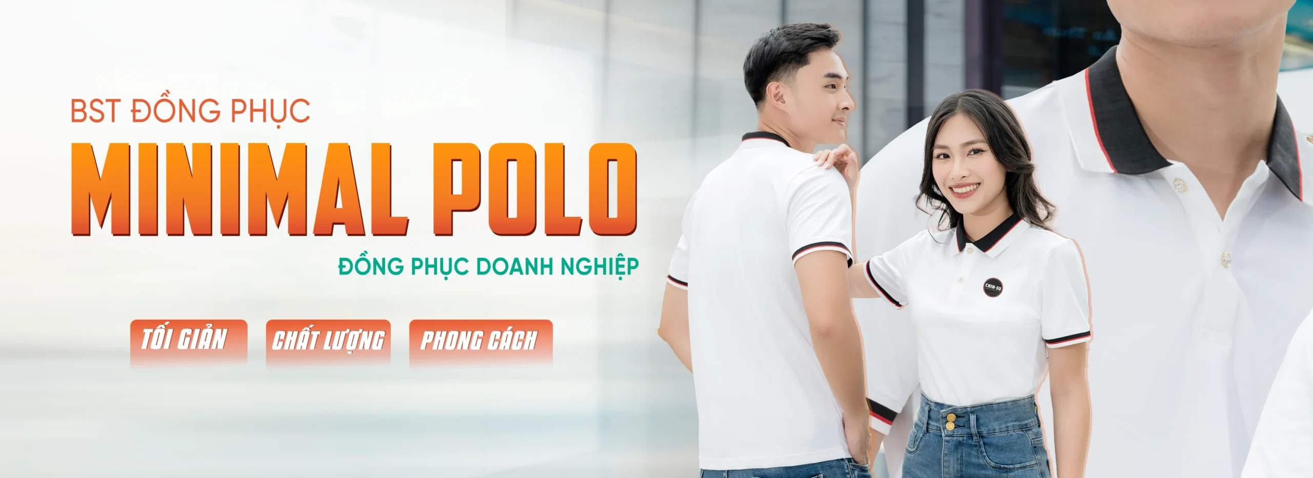 Áo đồng phục Minimal Polo: Màu trắng có 1 lé đường màu đỏ tươi 04 sử dụng chất liệu Airycool – Đây là loại vải đầu tiên trên thế giới được nghiên cứu trong phòng thí nghiệm với thành phần: 55% cotton, 42% Polyester, 3% Spandex.