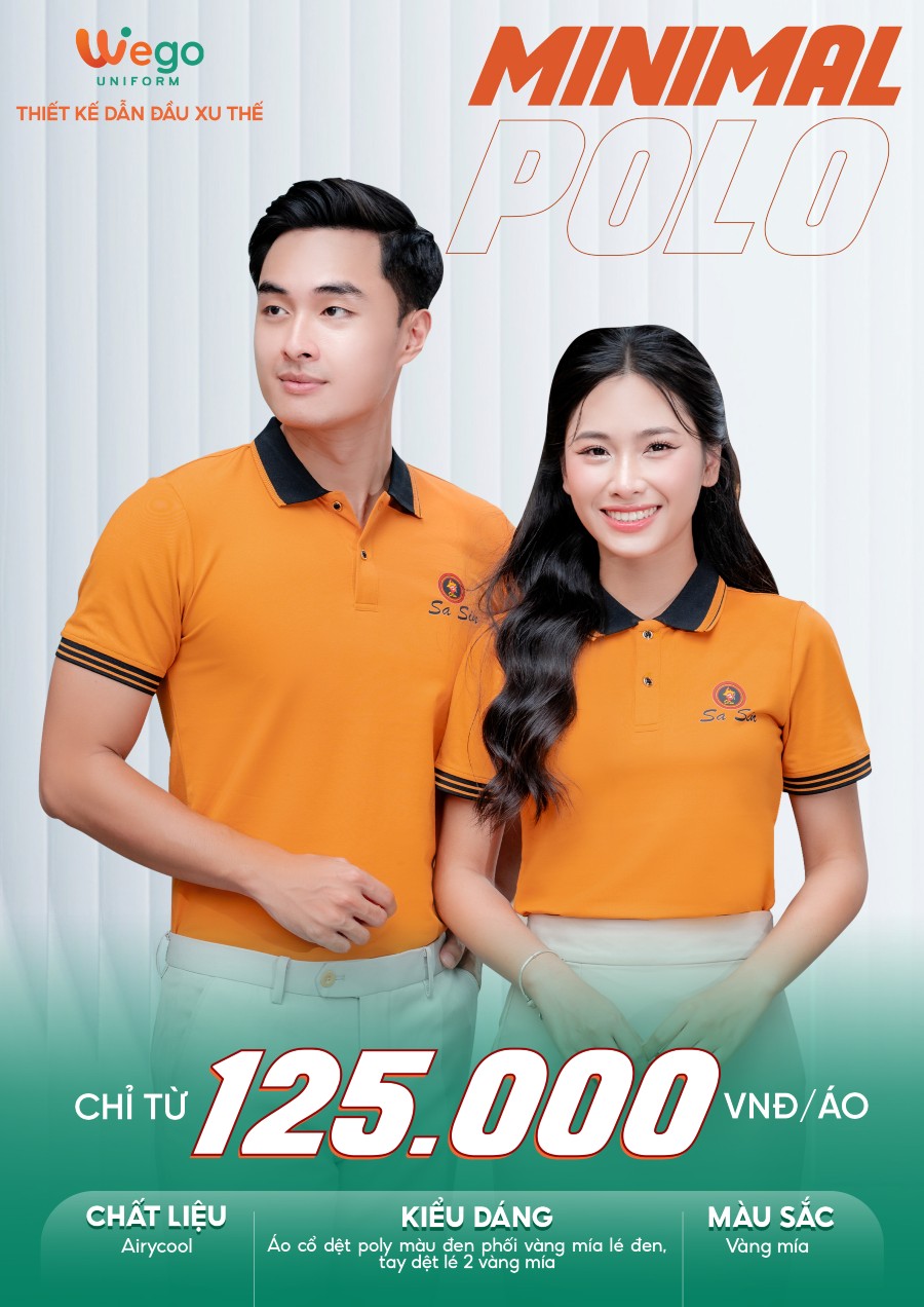 Áo đồng phục Minimal Polo: Màu vàng mía cổ dệt màu đen phối vàng mía sử dụng chất liệu Airycool – chất liệu được ra mắt tại Wego Uniform, sở hữu những tính năng vượt trội như: