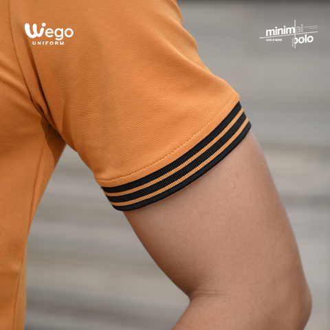 Áo đồng phục Minimal Polo: Màu vàng mía cổ dệt màu đen phối vàng mía sử dụng chất liệu Airycool – chất liệu được ra mắt tại Wego Uniform, sở hữu những tính năng vượt trội như: