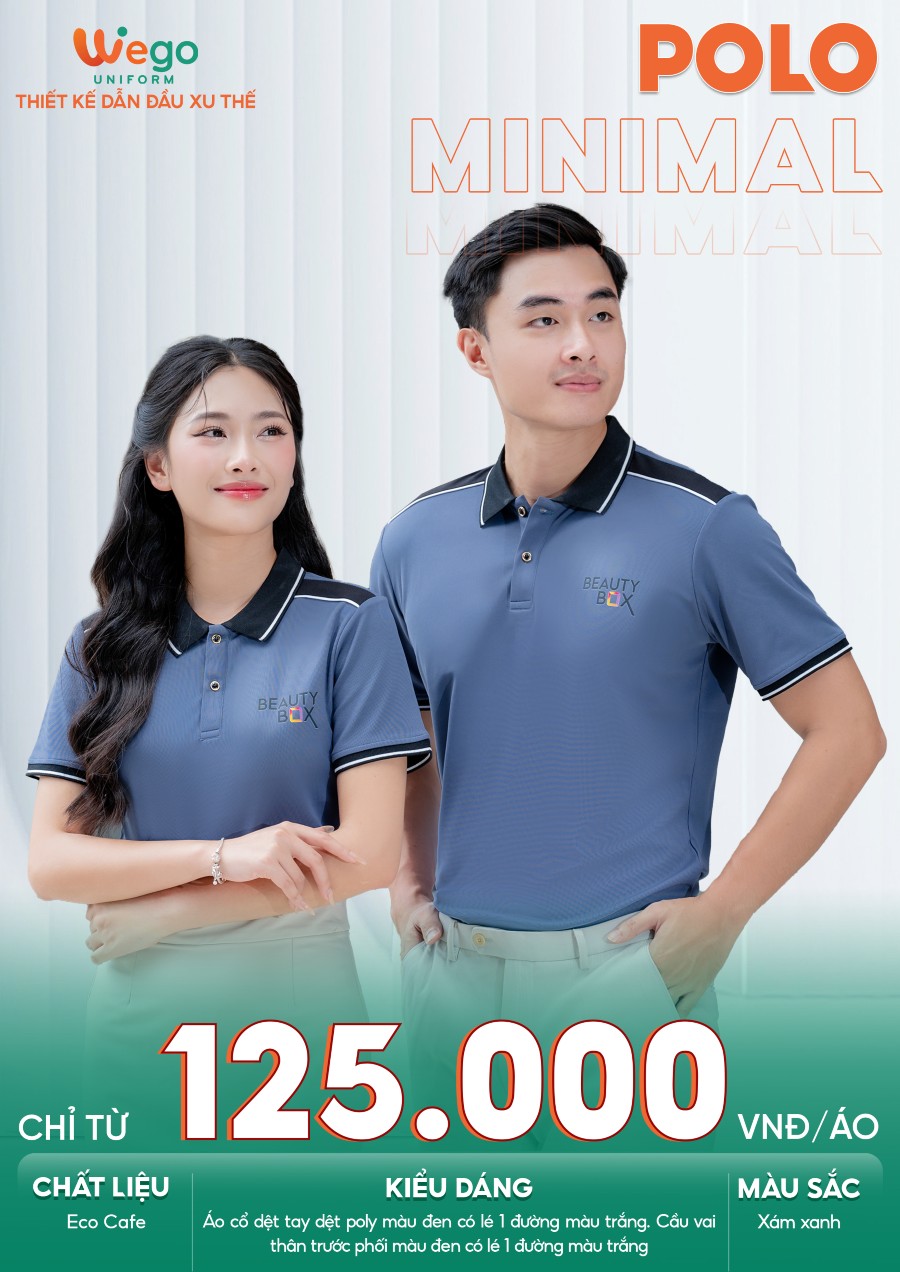 Áo phông thun đồng phục Minimal Polo: Màu xám xanh cổ dệt màu đen 03 là một trong những mẫu áo đồng phục hot nhất trong bộ sưu tập mới tại Wego với tên gọi – BST đồng phục Minimal Polo. Đây cũng là một trong những mẫu áo được nhiều doanh nghiệp yêu thích và lựa chọn khi xây dựng hình ảnh đồng phục cho đội ngũ nhờ khả năng kết hợp hài hòa giữa thẩm mỹ, chất lượng và tính ứng dụng cao.