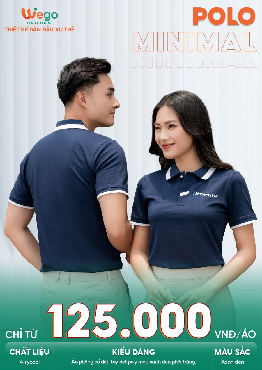 Áo đồng phục Minimal Polo: Màu xanh đen phối trắng 06 sử dụng chất liệu Airycool – Đây là loại vải đầu tiên trên thế giới được nghiên cứu trong phòng thí nghiệm với thành phần: 55% cotton, 42% Polyester, 3% Spandex.