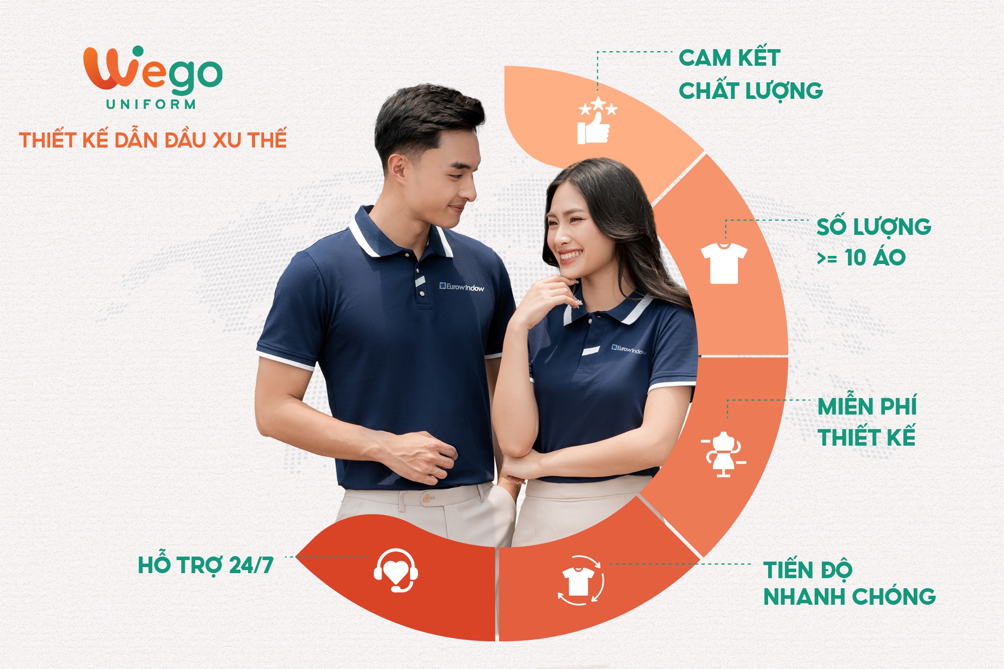 Với nhiều năm kinh nghiệm trong ngành sản xuất đồng phục, Wego tự hào là đơn vị dẫn đầu trong lĩnh vực đồng phục, trở thành đối tác đáng tin cậy của nhiều doanh nghiệp, tổ chức và cá nhân trên cả nước.