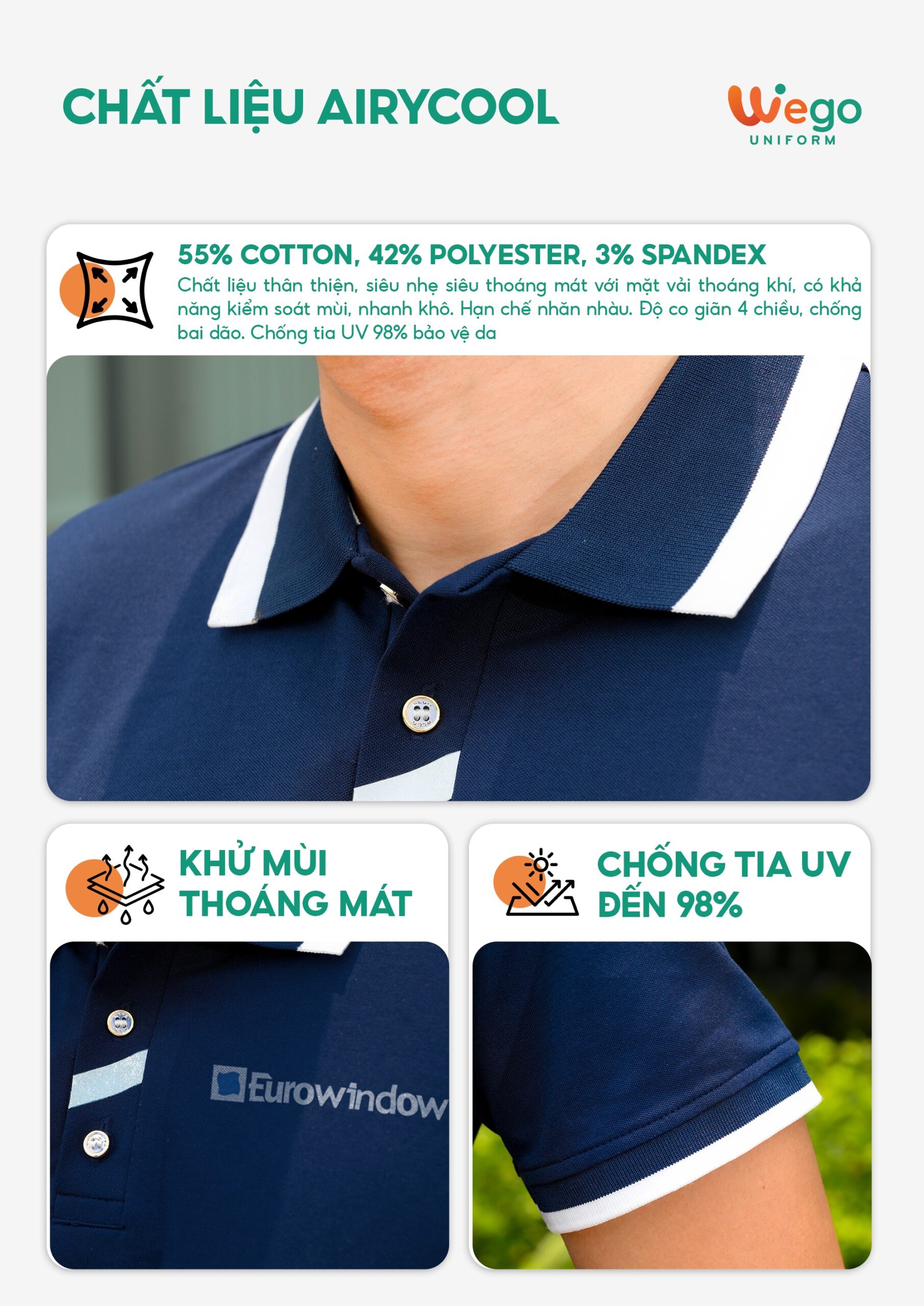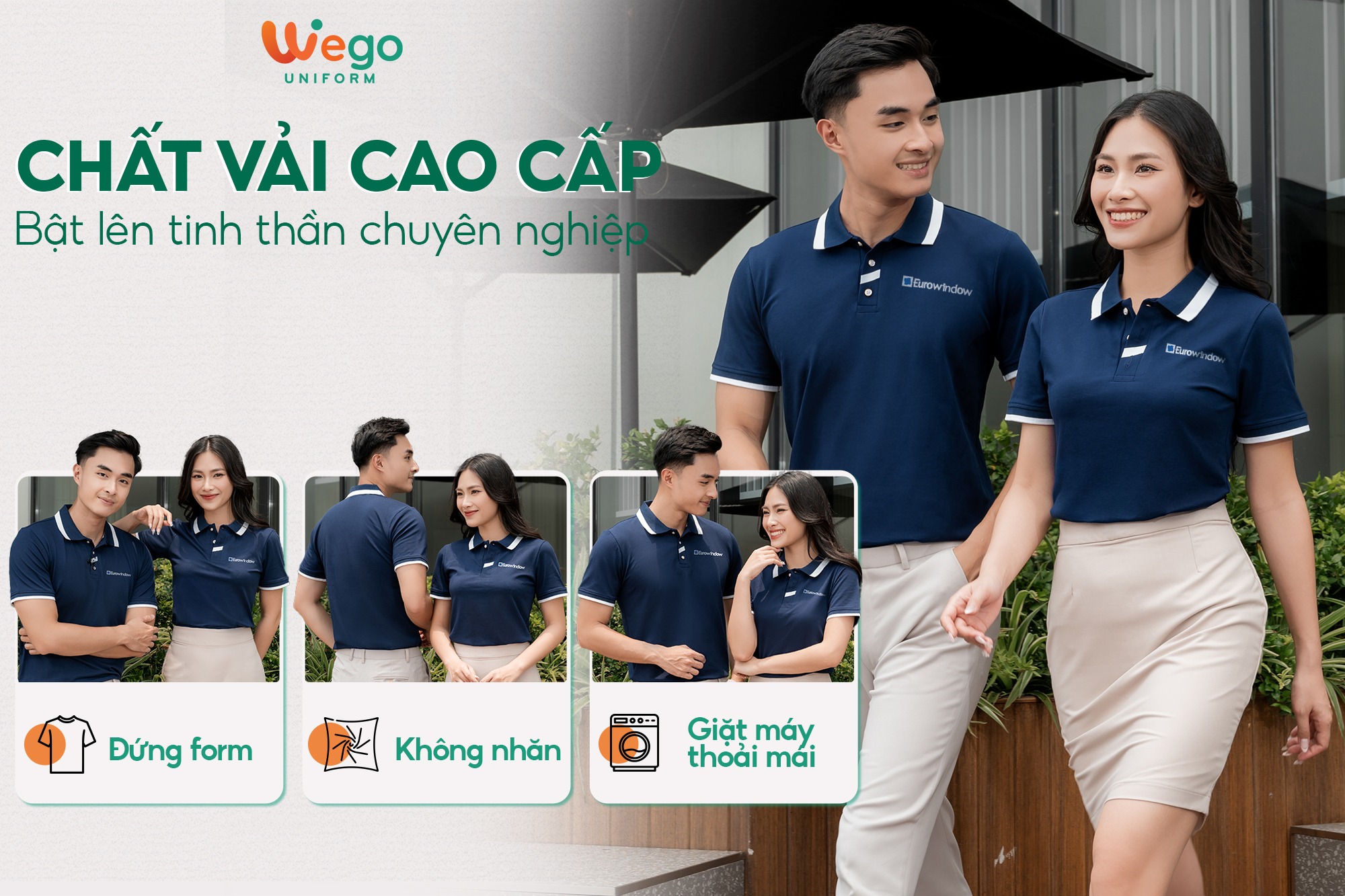 Chính vì vậy, áo đồng phục Wego luôn có độ bền cao, khả năng co giãn và thoáng khí tốt. Từ đó mang lại sự thoải mái tối đa cho người mặc, ngay cả trong thời tiết nắng nóng hay những môi trường làm việc đòi hỏi vận động nhiều hoặc trong thời gian dài.