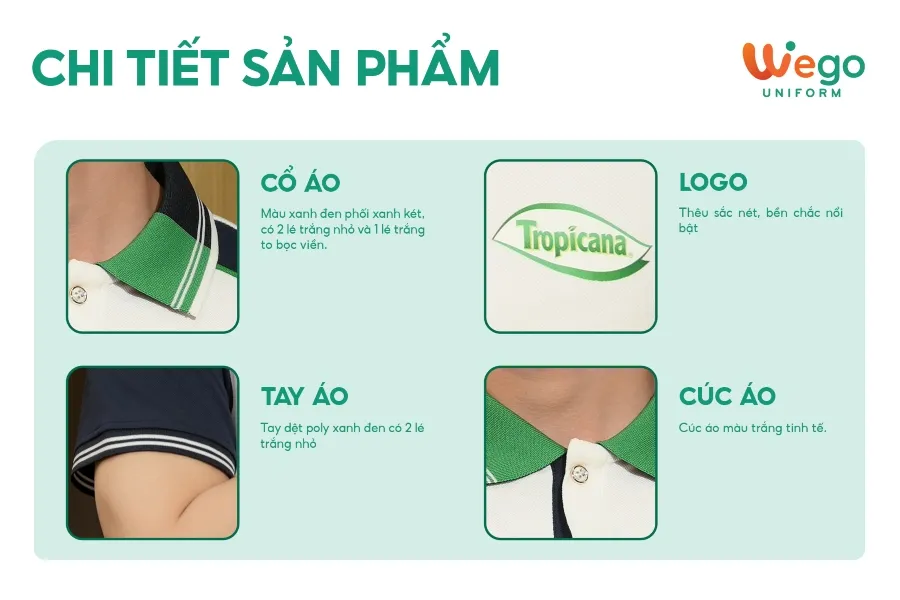 - Được thiết kế độc quyền bởi Wego Uniform, vừa nâng cao tính thời trang, vừa giúp nâng cao nhận diện thương hiệu