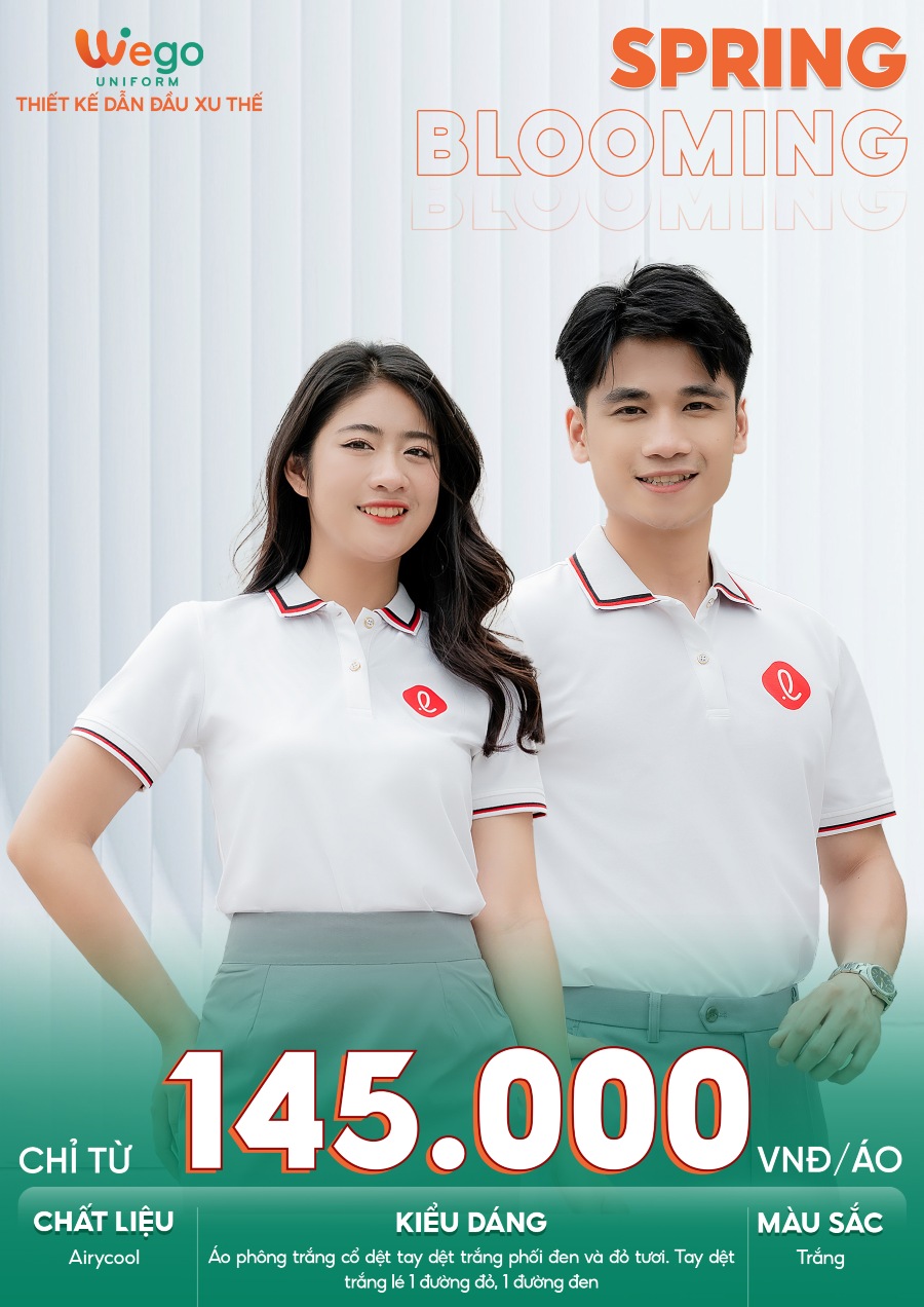 Áo thun phông đồng phục Spring: Blooming màu trắng đang trở thành tâm điểm trong bộ sưu tập đồng phục Spring: Blooming của Wego. Không chỉ nổi bật với thiết kế hiện đại và tinh tế, mẫu áo này còn được nhiều doanh nghiệp lựa chọn nhờ khả năng tôn vinh hình ảnh chuyên nghiệp và đồng bộ cho đội ngũ.