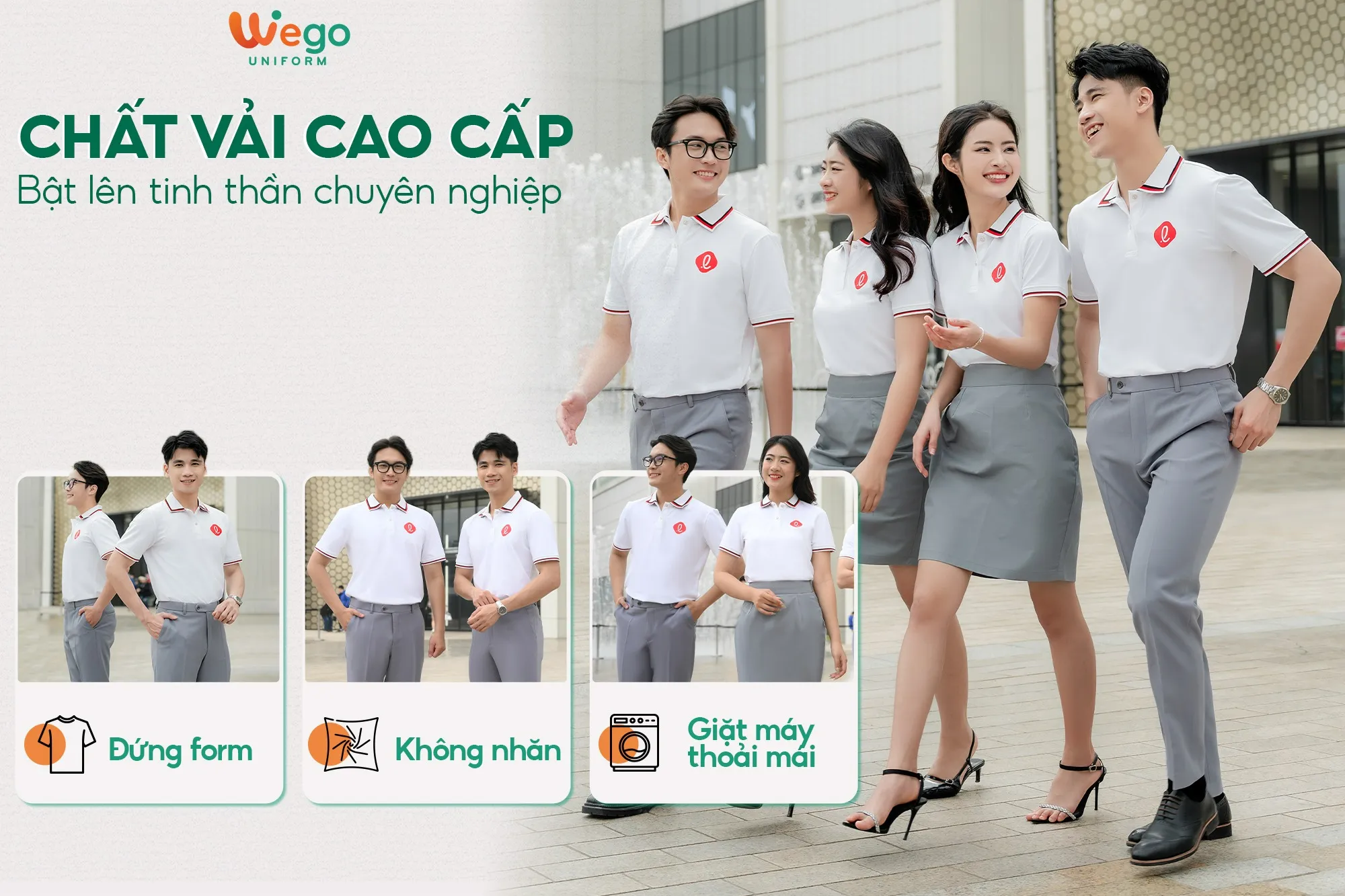Chính vì vậy, áo đồng phục Wego luôn có độ bền cao, khả năng co giãn và thoáng khí tốt. Từ đó mang lại sự thoải mái tối đa cho người mặc, ngay cả trong thời tiết nắng nóng hay những môi trường làm việc đòi hỏi vận động nhiều hoặc trong thời gian dài.