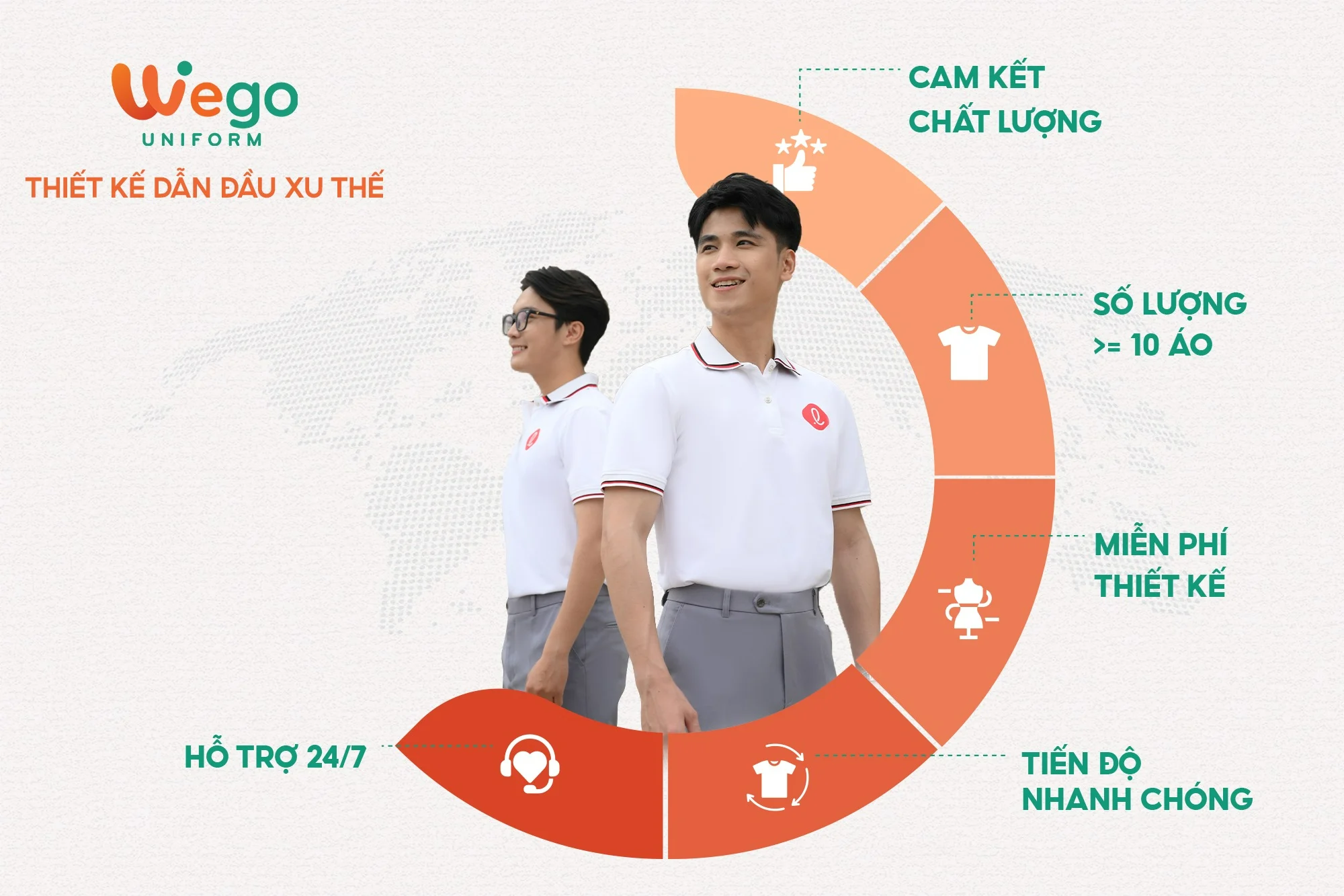 - Được thiết kế độc quyền bởi Wego Uniform, vừa nâng cao tính thời trang, vừa giúp nâng cao nhận diện thương hiệu