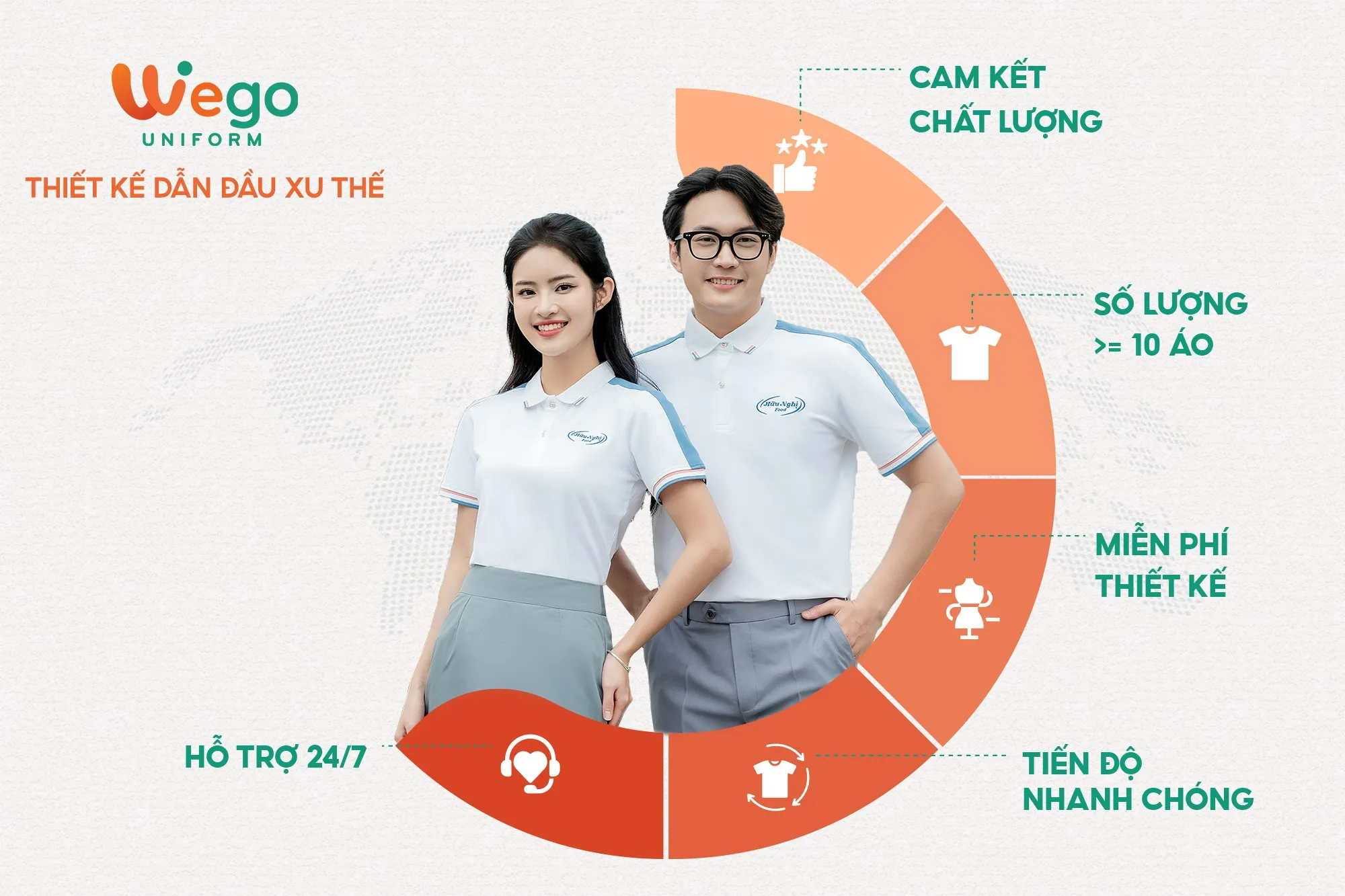 - Được thiết kế độc quyền bởi Wego Uniform, vừa nâng cao tính thời trang, vừa giúp nâng cao nhận diện thương hiệu