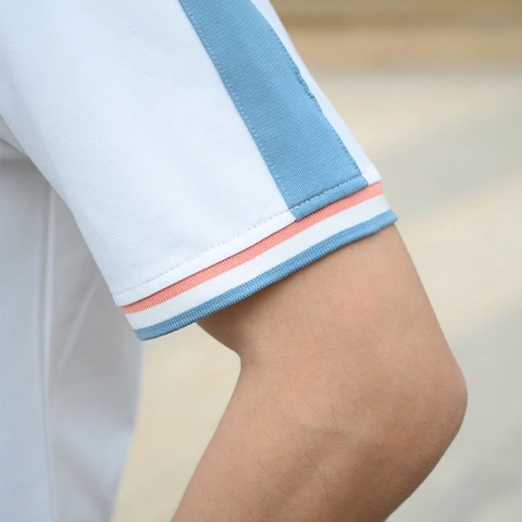 3. Kiểu dáng áo thun phông đồng phục Spring: Blooming màu trắng phối xanh
