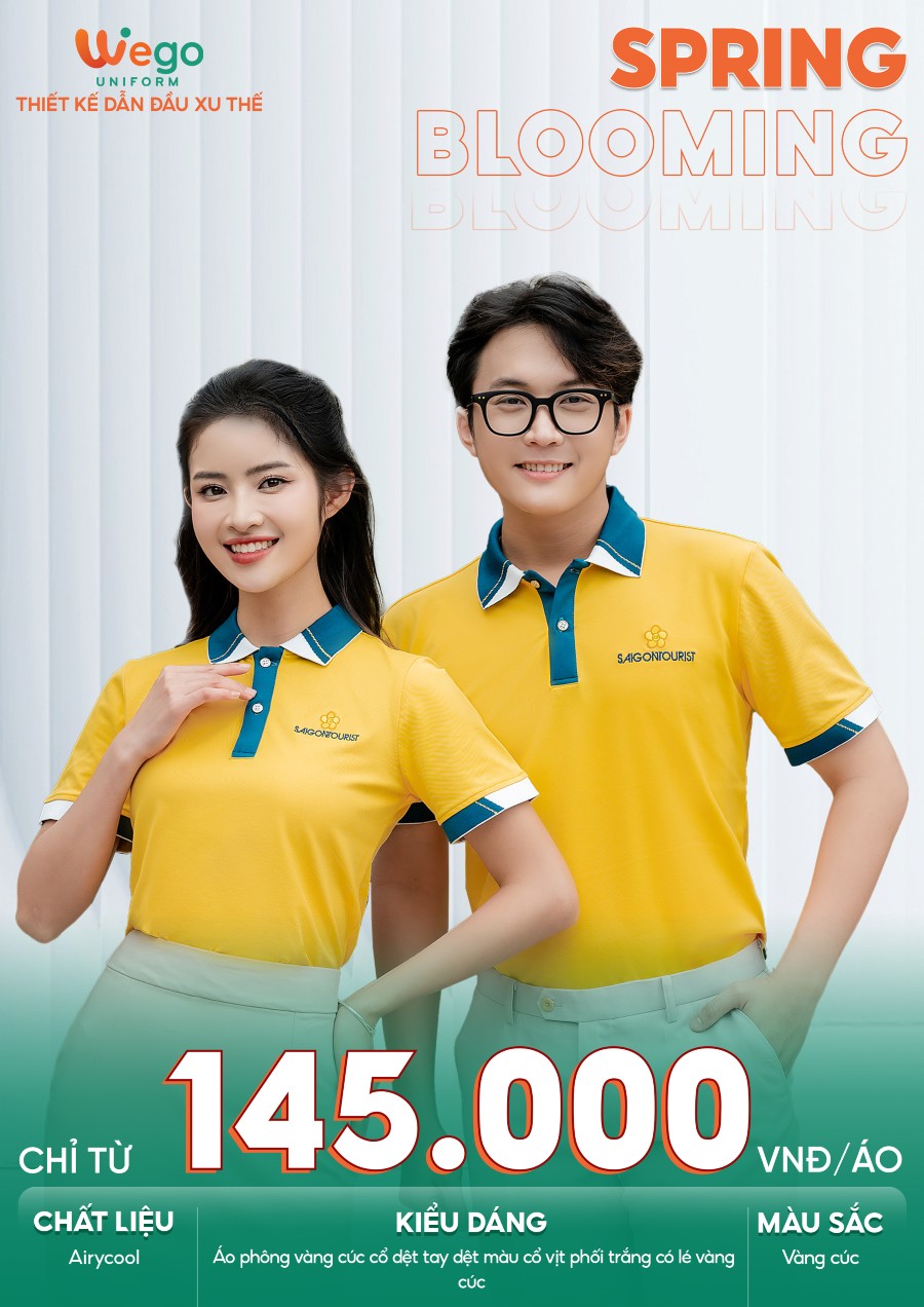 Áo thun phông đồng phục Spring: Blooming màu vàng đang trở thành tâm điểm trong bộ sưu tập đồng phục Spring: Blooming của Wego. Không chỉ nổi bật với thiết kế hiện đại và tinh tế, mẫu áo này còn được nhiều doanh nghiệp lựa chọn nhờ khả năng tôn vinh hình ảnh chuyên nghiệp và đồng bộ cho đội ngũ.