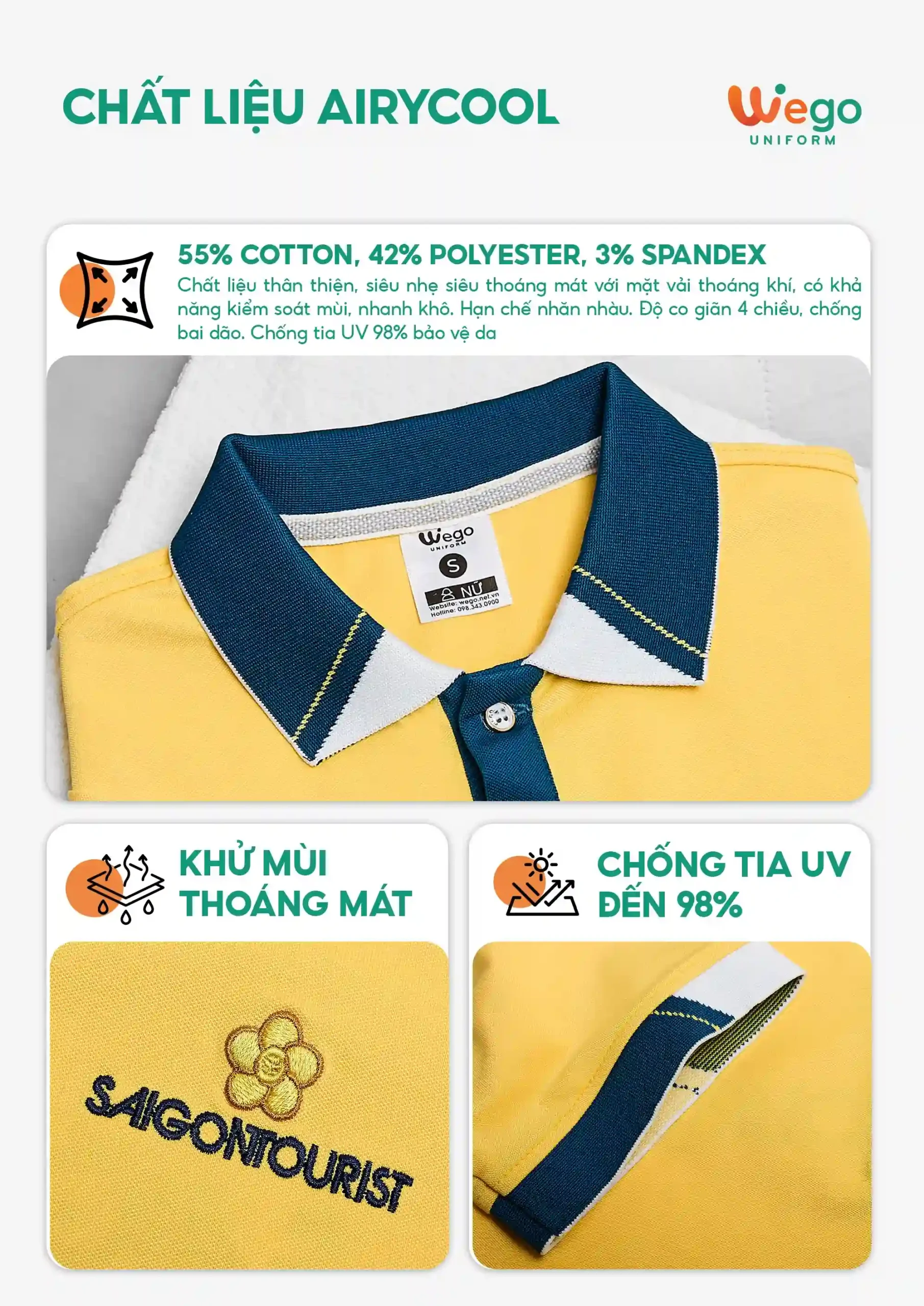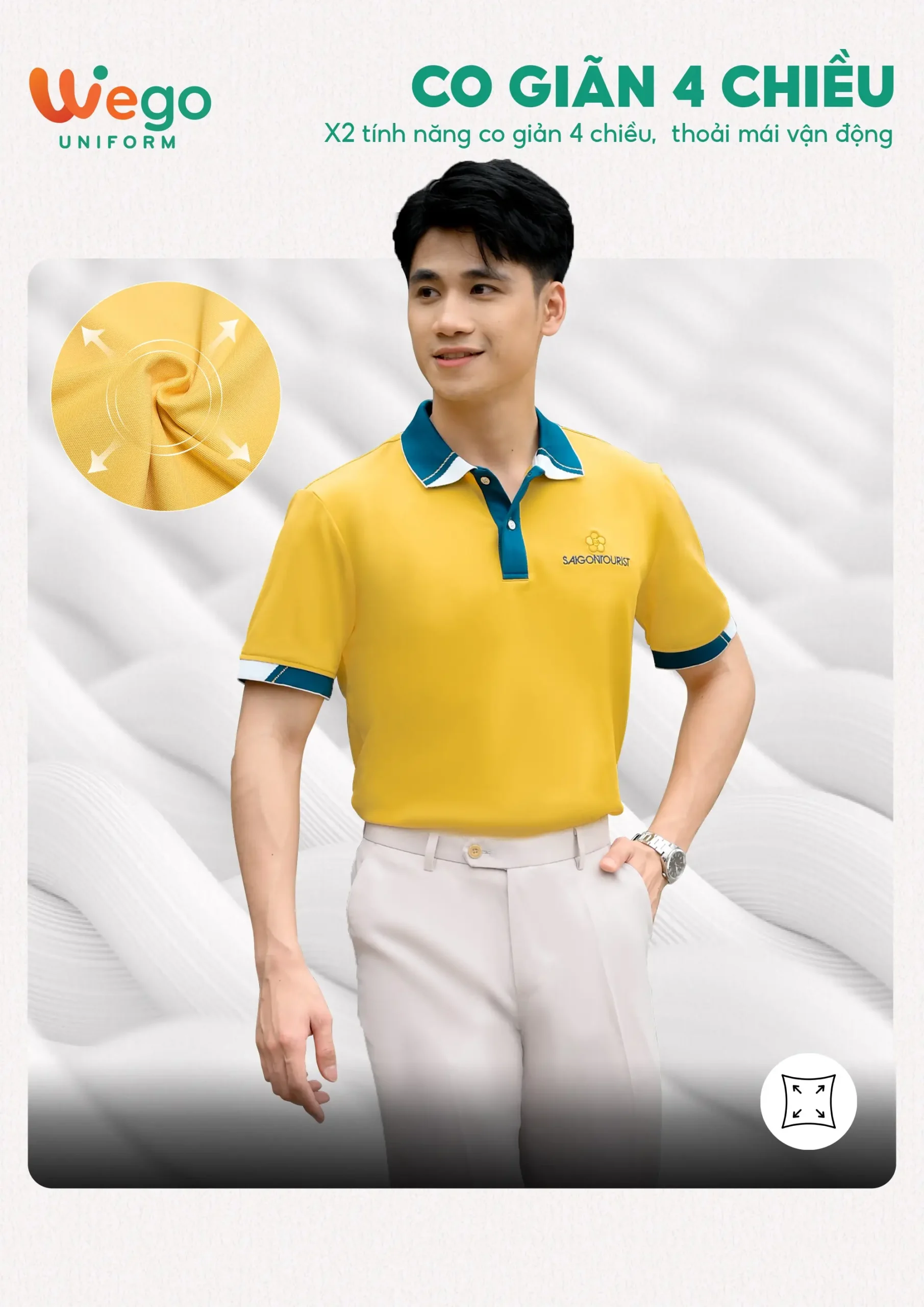 Chính vì vậy, áo đồng phục Wego luôn có độ bền cao, khả năng co giãn và thoáng khí tốt. Từ đó mang lại sự thoải mái tối đa cho người mặc, ngay cả trong thời tiết nắng nóng hay những môi trường làm việc đòi hỏi vận động nhiều hoặc trong thời gian dài.
