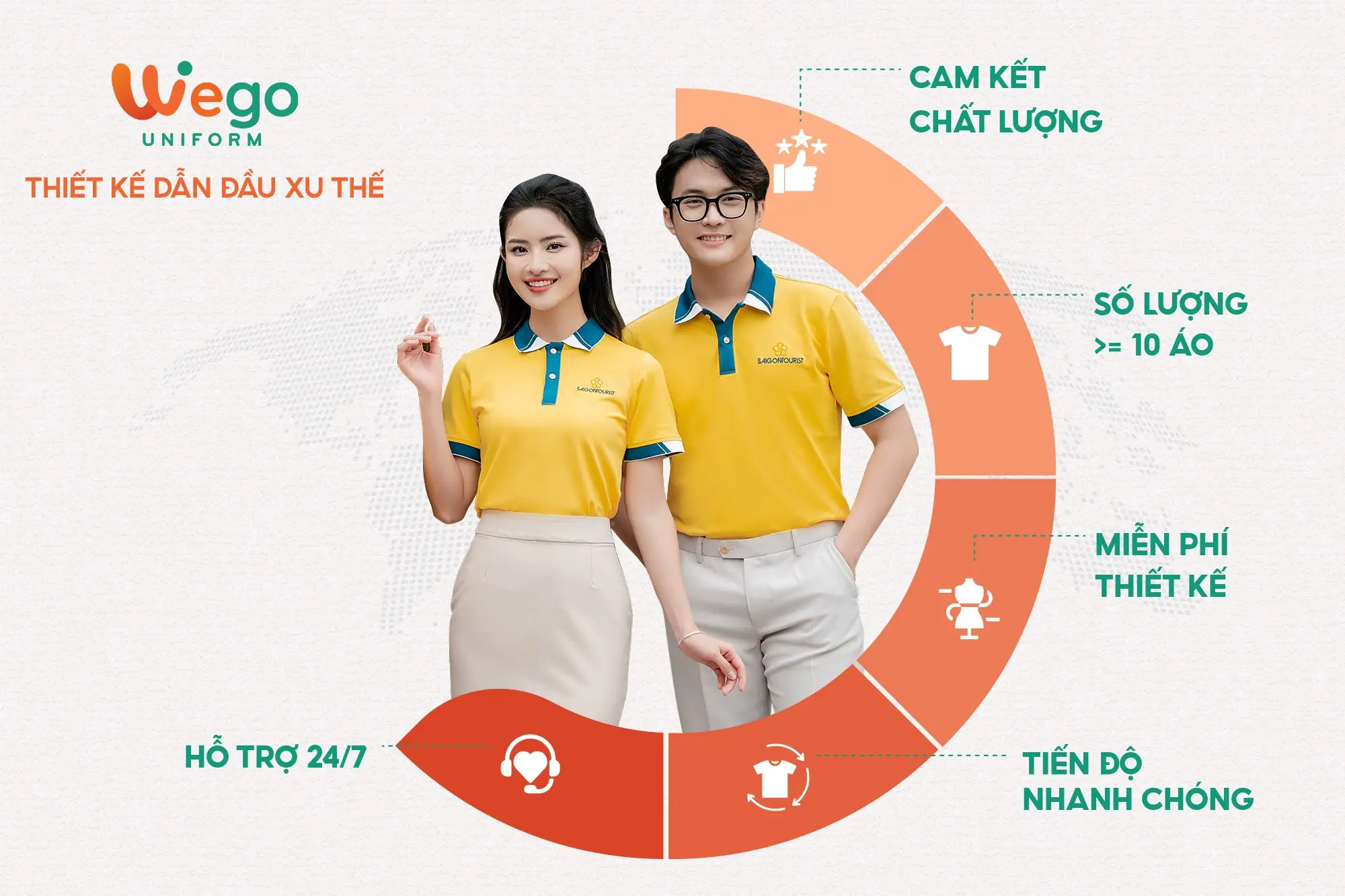 Với nhiều năm kinh nghiệm trong ngành sản xuất đồng phục, Wego tự hào là đơn vị dẫn đầu trong lĩnh vực đồng phục, trở thành đối tác đáng tin cậy của nhiều doanh nghiệp, tổ chức và cá nhân trên cả nước.