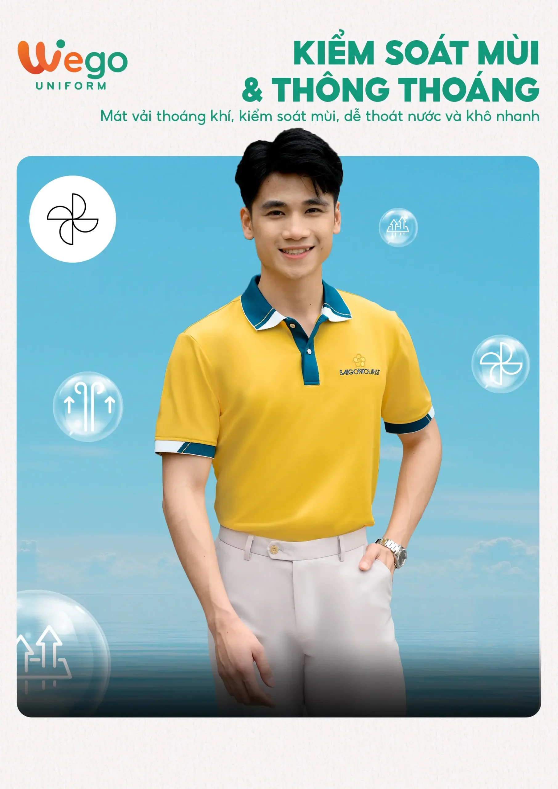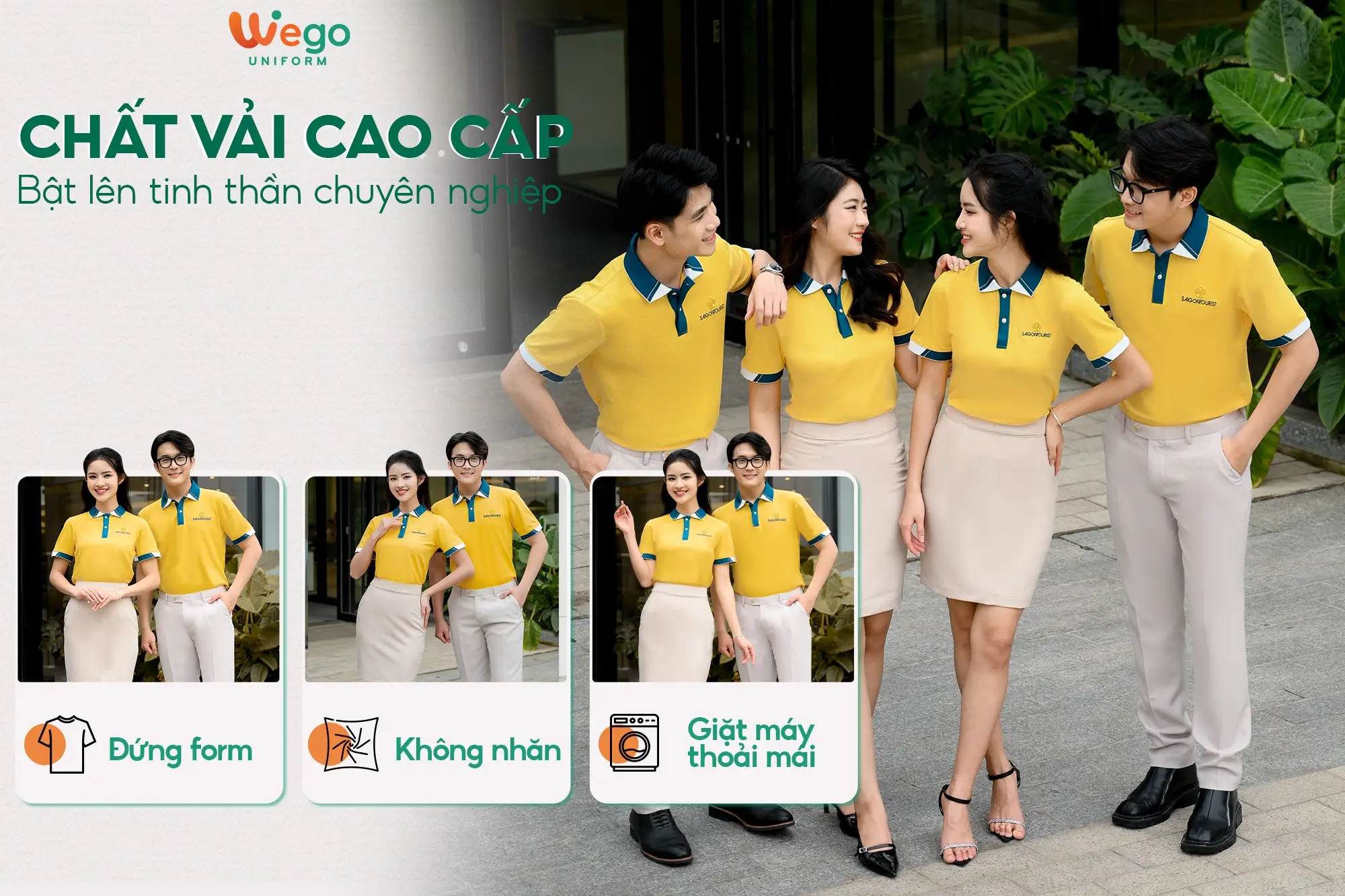 Chính vì vậy, áo đồng phục Wego luôn có độ bền cao, khả năng co giãn và thoáng khí tốt. Từ đó mang lại sự thoải mái tối đa cho người mặc, ngay cả trong thời tiết nắng nóng hay những môi trường làm việc đòi hỏi vận động nhiều hoặc trong thời gian dài.