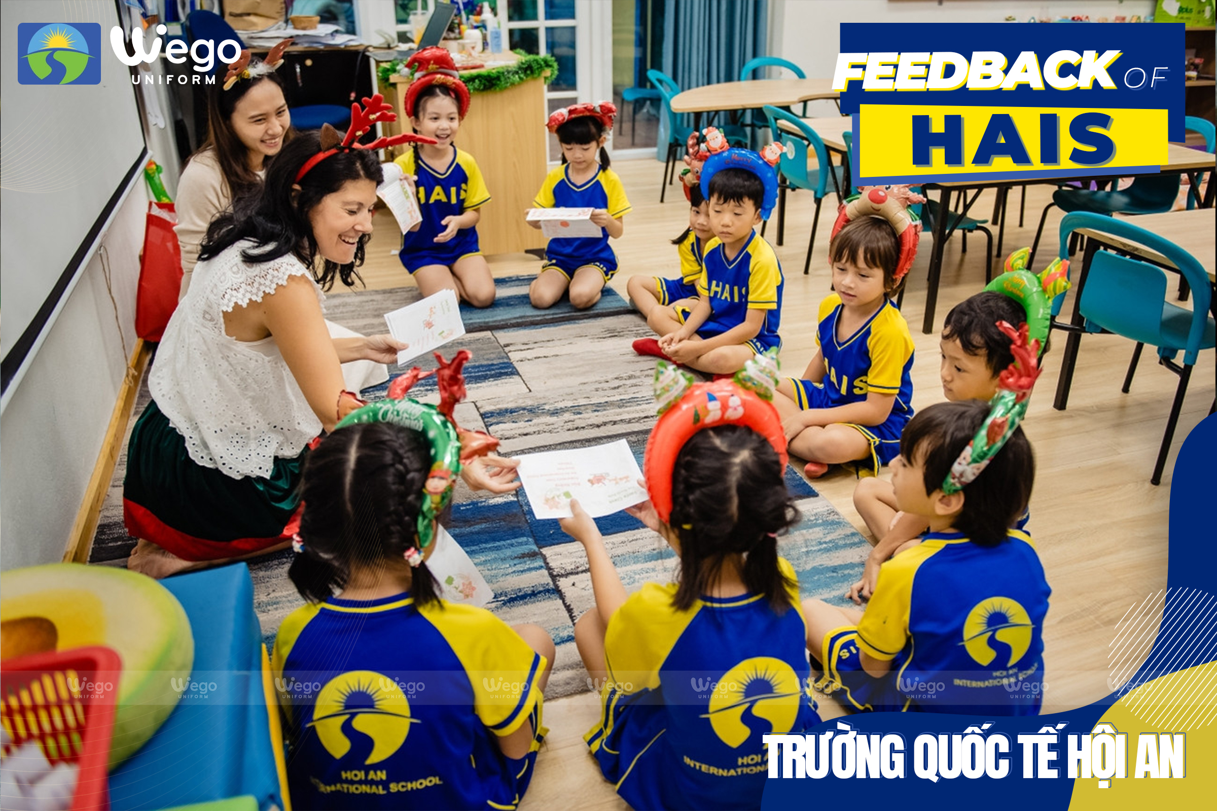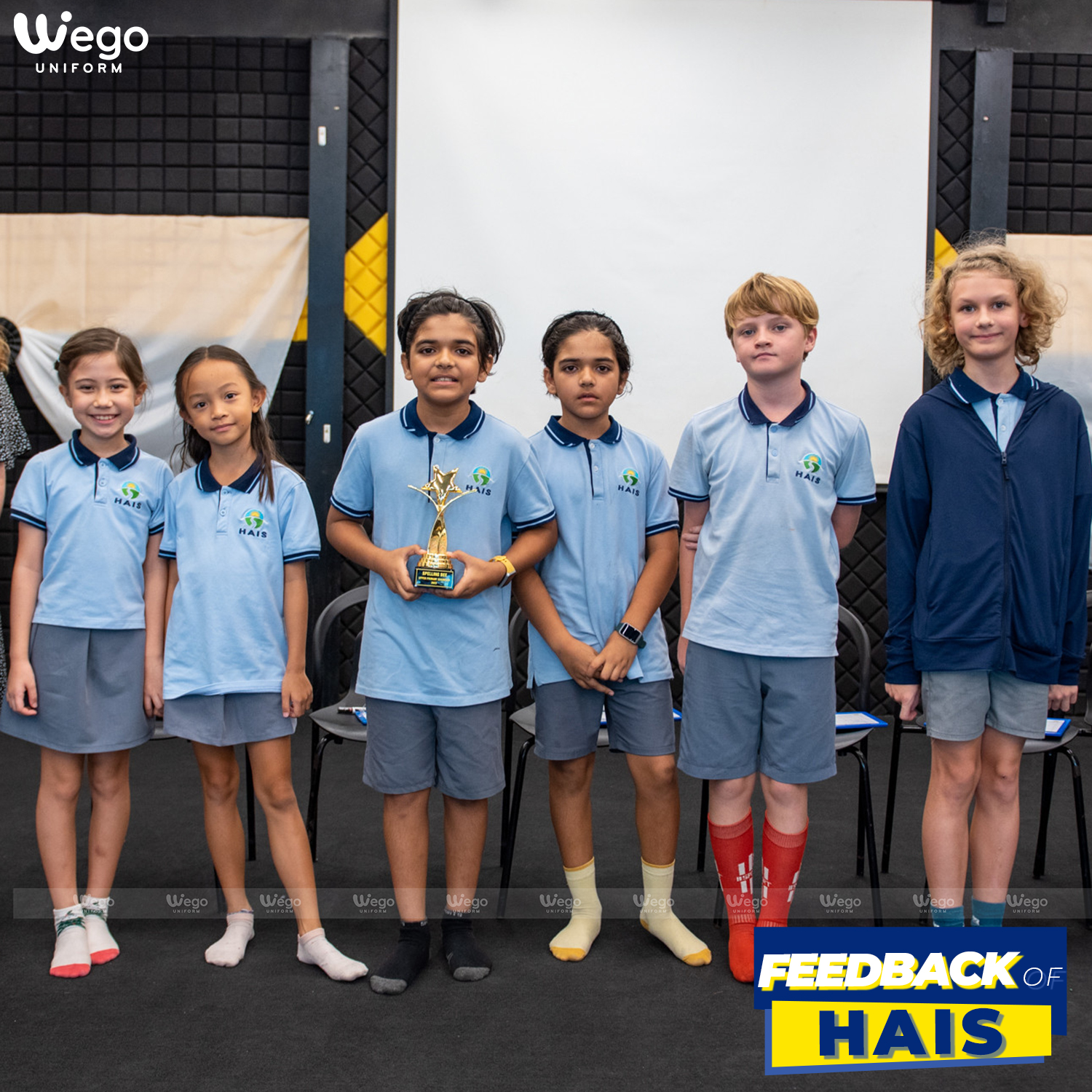 - Thiết kế: Kiểu dáng rộng tạo sự thoải mái cho trẻ. Đồng thời, cổ áo Polo và bo chun ở tay áo tạo sự nổi bật, ấn tượng. Kiểu dáng thiết kế hiện đại và phần cổ áo có cúc cài tạo sự tiện lợi cho người mặc. Gắn logo ở ngực trái. Màu sắc kết hợp 2 màu xanh làm và xanh than làm nổi bật lên mẫu áo thun đồng phục Trường quốc tế (Hội An)